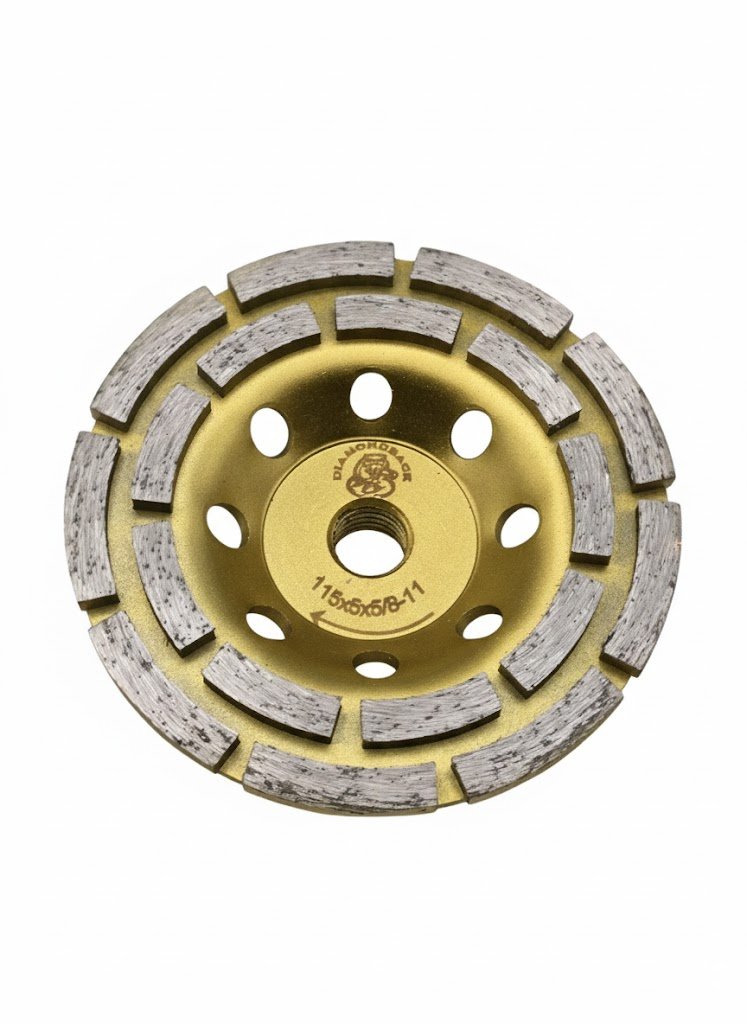 The Diamondback Double-Row Diamond Cup Grinding Wheel is engineered for professional contractors who demand speed, efficiency, and a superior finish on the toughest materials. Designed to effortlessly handle aggressive material removal and precision finishing, this cup wheel is the essential tool for your most demanding surface preparation jobs.