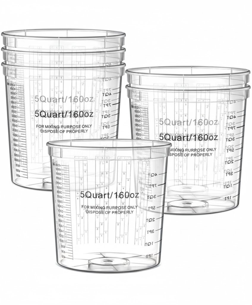 * ⚡️ High-Capacity 6-Pack: Each package includes six (6) extra-large 160 oz (5-Quart) mixing cups, providing ample volume for large-scale epoxy pours, automotive basecoats, and bulk resin art projects. Double as rugged, convenient storage containers for leftover materials.